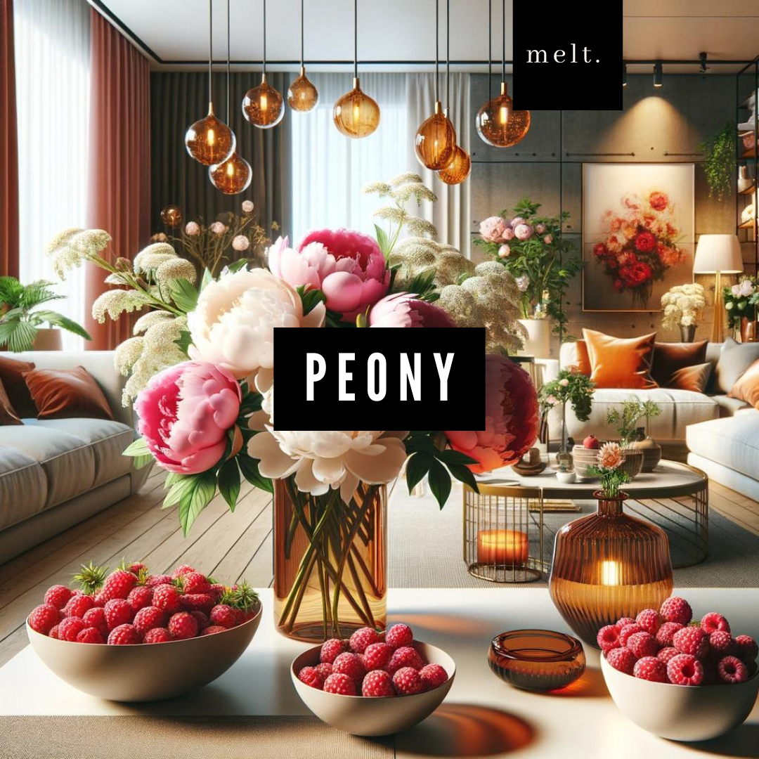 Peony by melt. is a sparkling floral escape — pink peony petals, ripe raspberry, and a splash of prosecco wrapped in soft musk and amber. It’s delicate, fresh, and filled with feminine energy.